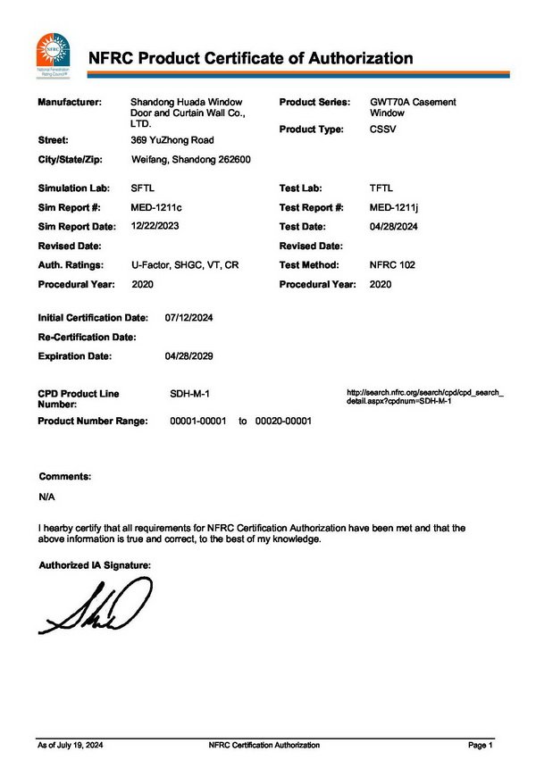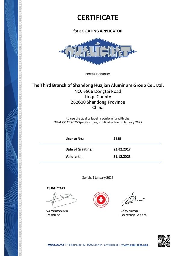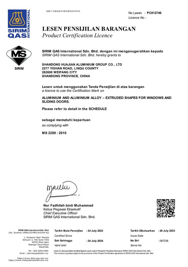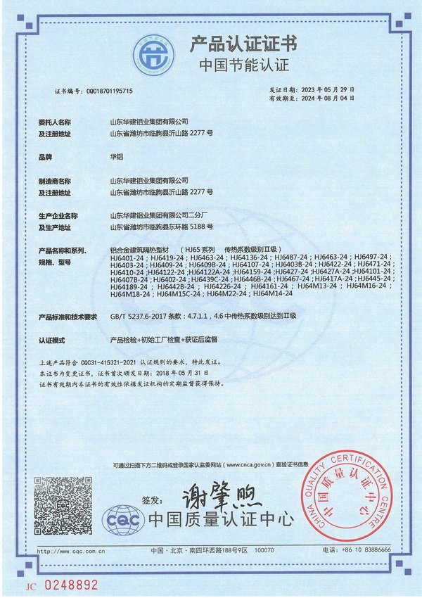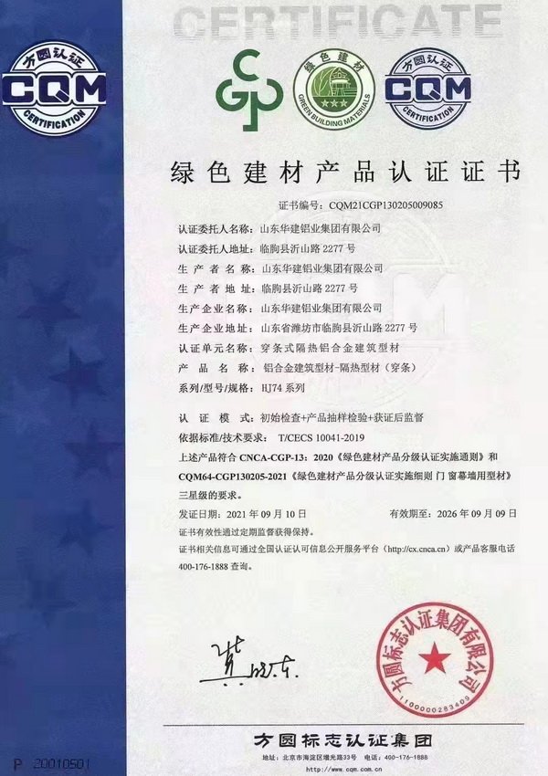Certificates CE Certificate Quality Management Certificate Laboratory Accreditation Certificate Qualicoat Certificate China Energy Saving Certificate Korean KSA Certificate Malaysia SIRIM Certificate China Green Products Certificate EOSS PHI Certificate Hua Da NFRC Certificate